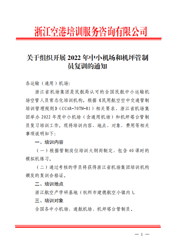 關(guān)于組織開展2022年中小機場和機坪管制員復(fù)訓(xùn)的通知